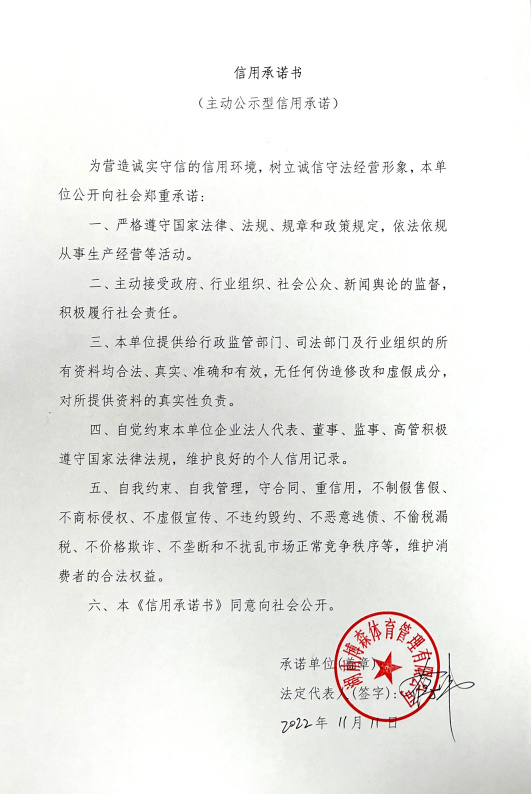 公司總經(jīng)理蔣偉簽署信用承諾書(shū)
